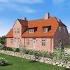 Die Fassade verblendet mit antiken Klinkersteinen, das Dach gedeckt mit Dachstein Ziegeln, die Eingangstüren nach „nordischer Art“ gestaltet: