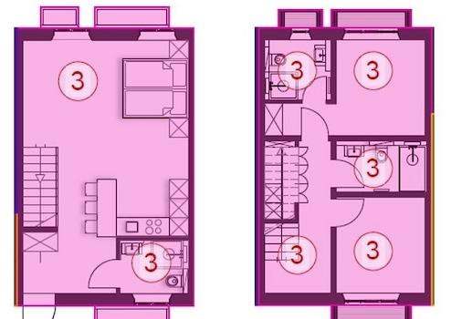 Das Doppelhaus erhält je Wohneinheit eine Luft-Wärmepumpe und einen Wärmetauscher im Außenbereich. Das Mehrfamilienhaus verfügt über zwei Luft-Wärmepumpen und zwei Wärmetauscher im Außenbereich für vier Wohneinheiten.