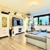 Herzstück der WE1 ist das große lichtdurchflutete Wohnzimmer / Esszimmer mit großen Fensterfronten und Zugang zur Terrasse, die mit WPC Dielen ausgestattet ist.