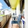 Vom hellen Wohn-/Esszimmer haben Sie Zugang zum Sonnenbalkon mit mechanischer Markise, auf dem Sie entspannte Stunden mit Fernblick über das grüne Wohnquartier genießen dürfen.