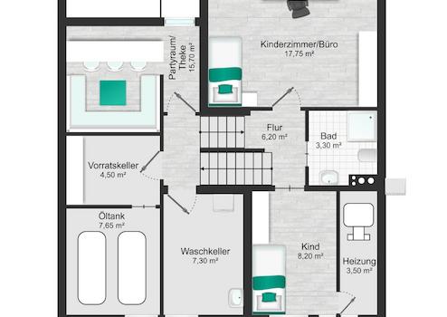 ✅ Keller mit weißer Wanne, Partyraum, Kinderzimmer, Büro und Waschraum