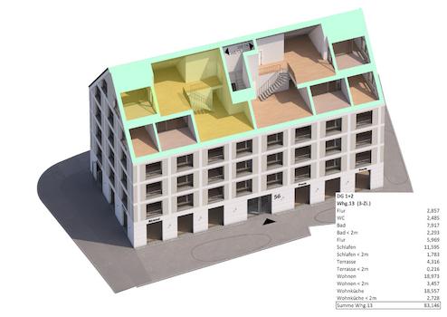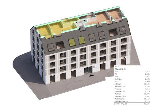 Das durchdachte Projekt erstreckt sich über sechs Etagen und umfasst insgesamt 15 Eigentumswohnungen in den oberen Geschossen sowie zwei vielseitig nutzbare Gewerbeeinheiten im Erdgeschoss. Zu jeder Wohnung gehört eine gemütliche Loggia, welche Ihnen herrliche Ausblicke und entspannte Momente im Freien ermöglicht.