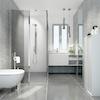 - ein Tageslicht-Badezimmer mit bodenebener Dusche und Fenster