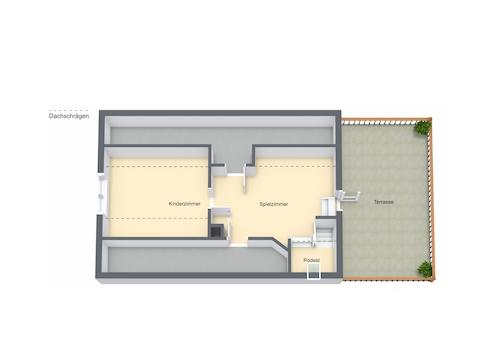 Dachgeschoss: Podest, Spielzimmer zum Zugang zur Dachterrasse, Kinderzimmer