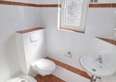 Die 3. WE (gartenseitig im OG) zeigt sich hell und modern: Küche, Wohnzimmer mit Balkon, Schlafzimmer sowie modernes Tageslichtbad mit Dusche, WC und Handwaschbecken.