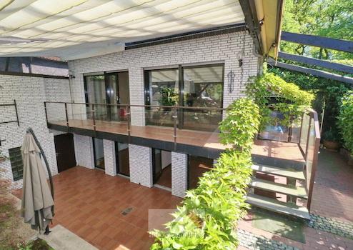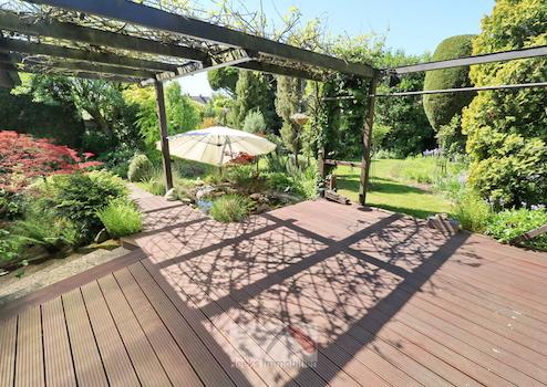Dieses frei stehende Wohnhaus wurde ursprünglich 1936 erbaut. Es steht auf einem 576m² großen Kaufgrundstück (also KEINE Erbpacht). 1981 und zuletzt 2003 wurde Um- und Angebaut und dabei modernisiert. So zeigt es sich heute aufgeteilt in 3 Wohneinheiten: die WE1 (Eigentümerwohnung) mit ca. 97m² ist wie folgt aufgeteilt: im EG Eingangsbereich, Wohn-/Esszimmer (mit Kamin) und Balkon, offene Küche, Gäste-WC mit Dusche; im Souterrain zwei Schlafräume mit Ausgang auf die Terrasse, Saunabereich, neuwertiges Tageslichtbad mit Duschzone, Toilette. Gartenseitig wurde eine große Überdachung angebaut, wodurch der attraktive Außenbereich gut nutzbar ist. Der Garten bietet zahllose, spannende Blickwinkel mit Wohlfühlcharakter.