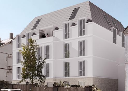 Inmitten einer hochwertigen Jugendstilbebauung entsteht ein barrierefreies, zukunftsweisendes, klimaneutrales Wohngebäude in Anbindung an eine denkmalgeschützte Jugendstilvilla.