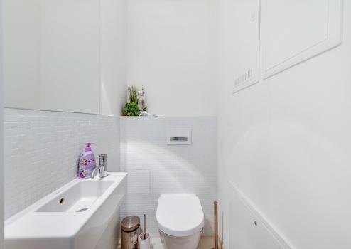 Besonderen Komfort bietet der praktische Abstellraum, der nicht nur für zusätzlichen Stauraum sorgt, sondern auch Platz für eine eigene Waschmaschine und einen Trockner bietet.