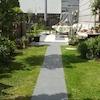 Von der Terrasse führt eine Treppe - alternativ der Aufzug - direkt in den idyllischen Garten mit kleinem Teich und Strandkorb. Hier genießen Sie entspannte Stunden im Grünen.