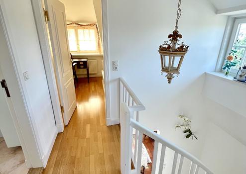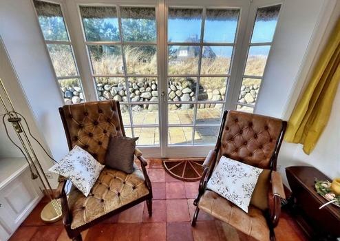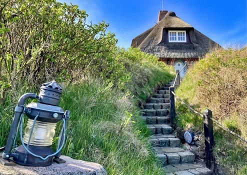 Ein wahres Schmuckstück mit kleinem Wattblick. Einzelhaus unter Reet in erhöhter Lage mit geräumiger in die Düne eingelassener Garage. Über einen kleinen Aufgang gelangt man auf den höchsten Punkt des Grundstücks und genießt einen herrlichen Panoramablick. Weiterhin gibt es einen kleinen vor Blicken geschützten Sonnenplatz, welcher von der Terrasse aus zu erreichen ist, sowie einen weiteren kleinen, eingewachsenen Rückzugsort am Rande des Grundstücks. Das Haus ist mit diversen hochwertigen Tischlereinbauten und Fliesenarbeiten versehen die mit viel Liebe zum Detail ein behagliches Wohnambiente vermitteln.