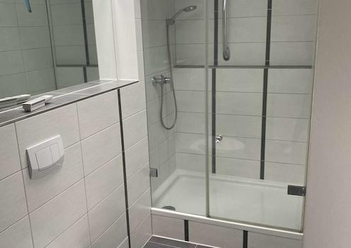 Die Wohneinheit 03 erstreckt sich über ca. 54 m² und bietet zwei großzügige Wohnräume mit einer Einbauküche. Die Gestaltung sorgt für ein angenehmes Wohnambiente und macht die Wohnung ideal für Singles oder Paare. Das Tageslicht-Bad ist mit einer bodengleichen Dusche ausgestattet. Ein besonderes Highlight ist die gemütliche Dachterrasse, die einen herrlichen Rückzugsort im Freien bietet. Hier lassen sich entspannte Stunden mit einem schönen Blick über die Umgebung genießen.