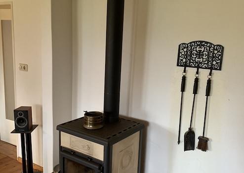 Der offene Wohn- und Essbereich bildet das zentrale Herzstück des Hauses. Hohe Decken und große Fenster schaffen ein luftiges, lichtdurchflutetes Ambiente – ein besonderes Highlight ist der Kaminofen, der in den kühleren Monaten wohlige Wärme und eine behagliche Atmosphäre spendet.