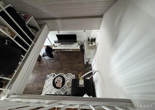 Das Herzstück der Wohnung ist der offene Wohn- und Essbereich mit Galerie & Zugang zum Balkon.