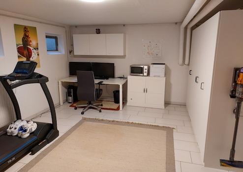 Zum Haus gehören eine massive Garage sowie ein zusätzlicher PKW-Stellplatz. Im Keller steht ein modernes Duschbad zur Verfügung; zwei der Kellerräume wurden in wohnliche Räume umgestaltet und eignen sich ideal als Gästezimmer, Büro oder Hobbybereich.
