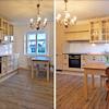 • Bodenarten: Originale, aufbereitete Holzdielen, moderne Fliesen im Bad