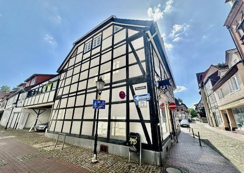 Dieses inmitten der Hamelner Altstadt befindliche Wohn- und Geschäftshaus befindet sich auf einem Eckgrundstück umgeben von historischen Bauten.