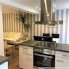 Küchenausstattung mit Ceran-Kochfeld, Backofen, Spülmaschine und Kühl-/Gefrier-Einheit,