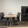 Der Wohnraum mit bequemem Sitzbereich und Esstisch, der auch als Arbeitsplatz genutzt werden kann, bietet vielfältige Optionen.