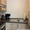 Küche mit Cerankochfeldern und Backofen; Mikrowelle; Kühlschrank; Geschirrspülgerät;