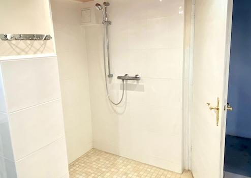 Im Keller befindet sich eine Garage und ein großes Bad mit großer, moderner und ebenerdiger Dusche.