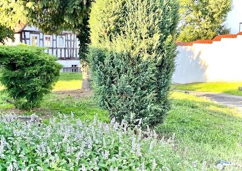 Im Garten befinden sich einige Nebengebäude, ein Freisitz, ein Brunnen (nicht gebohrt) und die Terrasse des Hauses.