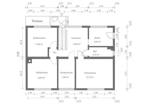 Über die Treppe vom Hauseingang gelangt man in die offene Essdiele von der die Zimmer des Hauses abgehen.