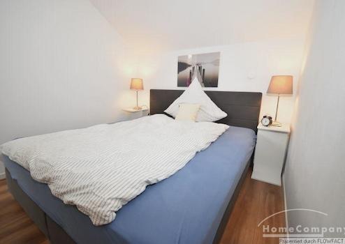 Die moderne Küche ist vollständig ausgestattet und lässt keine Wünsche offen. Über den Flur erreicht man die beiden Schlafzimmer, die jeweils mit einem komfortablen Doppelbett eingerichtet sind.