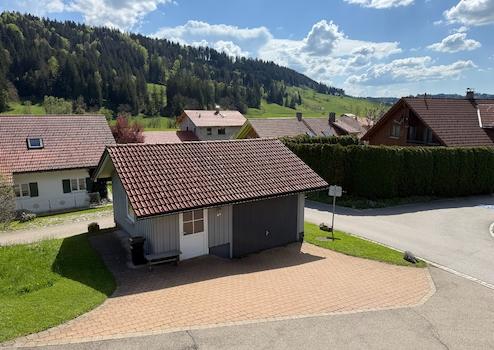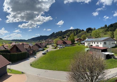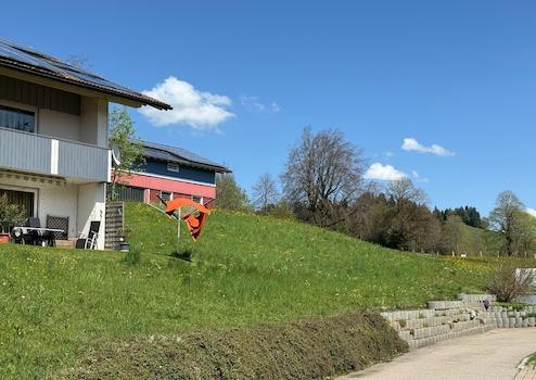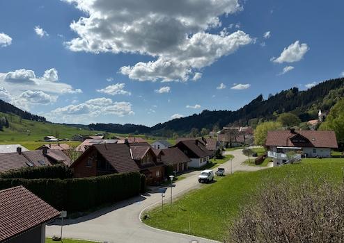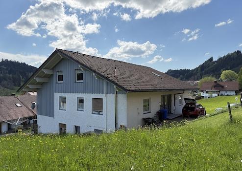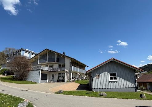 Das Einfamilienhaus mit Einliegerwohnung befindet sich in Ebratshofen, umgeben von grünen Wiesen und Wäldern. Die ruhige Wohngegend bietet eine entspannte Atmosphäre und ist ideal für Naturliebhaber und Ruhesuchende. In unmittelbarer Nähe befinde sich ein kleiner Einkaufsladen für den täglichen Bedarf.