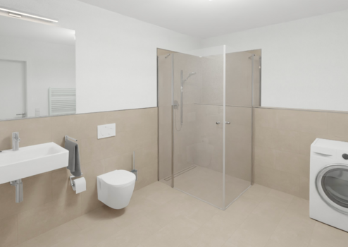 hochwertige Sanitärausstattung (auf Wunsch rollstuhlgerechte Ausführung)