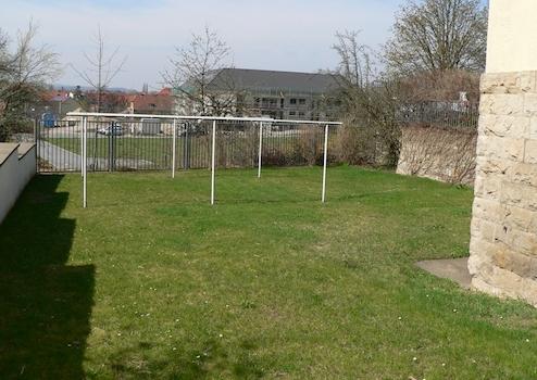 Sanierter Altbau auf großem Grundstück in Hanglage oberhalb der Altstadt von Pirna. Schöner großer Garten und Pkw-Stellplätzen im Hof. Gemeinschaftlicher Fahrradkeller und Trockenplatz für Wäsche im Garten oder auf dem Dachboden.