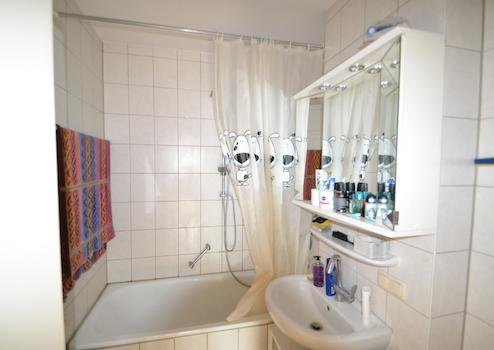 - Innenliegendes Badezimmer mit Badewanne