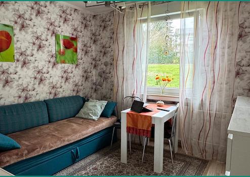 *Das Wohnzimmerfenster ist noch aus dem Baujahr 1973 und verfügt über eine Isolierverglasung mit Holzrahmen.