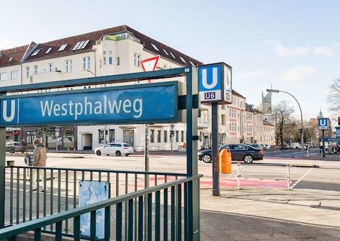 Zusätzliche Lebensqualität bieten die Sportmöglichkeiten im Volkspark Mariendorf sowie die Nähe zum Tempelhofer Feld, das nur etwa 4 Kilometer entfernt liegt und Raum für vielfältige Aktivitäten bietet. Auch die beliebte Einkaufsmeile Schloßstraße in Steglitz ist in nur etwa 6 Kilometern erreichbar. Die Anbindung an den öffentlichen Nahverkehr ist hervorragend: Die U-Bahn-Station Westphalweg liegt eine Gehminute entfernt und verbindet die Lage optimal mit der Berliner Innenstadt.