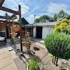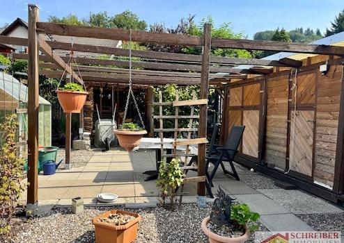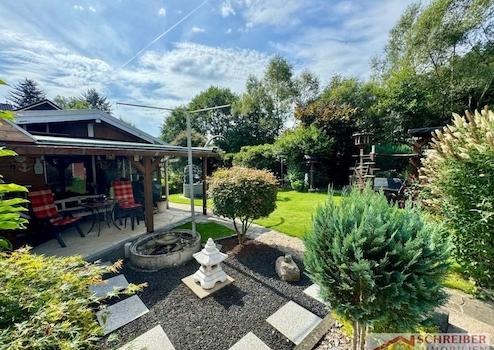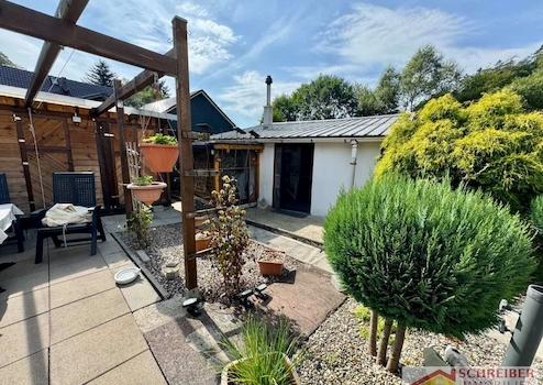 Im Garten befinden sich div. Sitzmöglichkeiten, ein großes Gartenhaus, und einige Schuppen zur Lagerung des Brennstoffvorrates. Eine Scheune, die als Werkstatt dient ist ebenfalls vorhanden wie ausreichend befestigte Stellplätze und ein Carport,