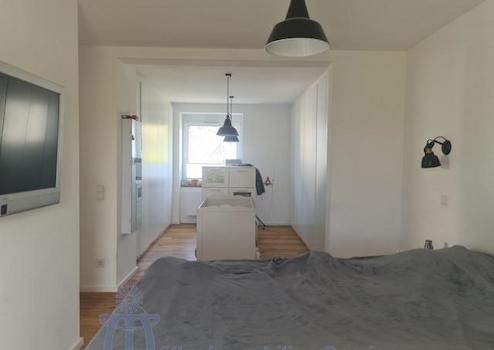 Die Innenwände sind glatt verputzt und weiß gestrichen; die Decken sind abgehängt, glatt verspachtelt und weiß gestrichen, in Küche und Wohn-Essbereich mit Einbaustrahlern versehen.