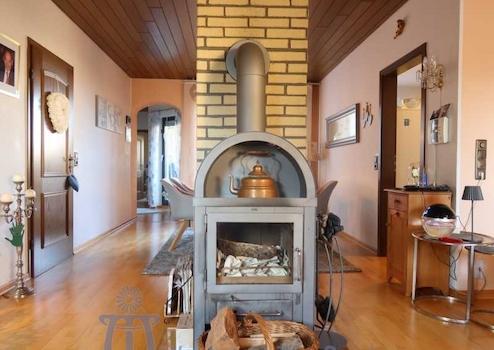 Zusätzlich verbreitet ein gußeisener Kaminofen eine angenehme wohlige Wärme im gesamten Erdgeschoß.