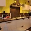 Eine hochwertige moderne Einbauküche mit weißen Fronten und Edelstahl-Abzugshaube wurde im Jahr 2018 eingebaut.
