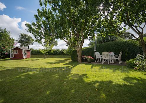 Die große und beheizbare Garage (ca. 9 x 4 m) mit Satteldach, Nebenraum und Spitzboden und der schön angelegte Garten auf dem ca. 1.062 m² großen Grundstück komplettieren dieses Immobilienangebot in ruhiger und begehrter Feldrandlage von Nieblum.