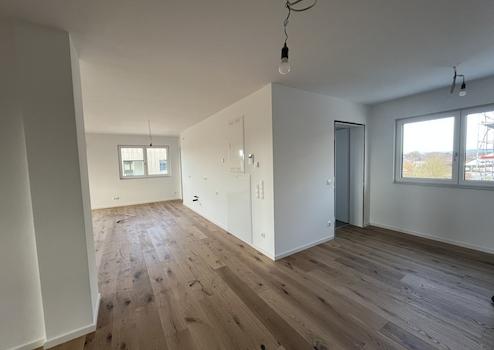 Beim Betreten der Wohnung empfängt Sie ein heller Eingangsbereich, der nahtlos in den offenen Wohn- und Essbereich übergeht. Große Fensterfronten lassen viel Tageslicht herein und schaffen eine einladende Atmosphäre. Die moderne Küche ist funktional gestaltet und bietet ausreichend Platz für kulinarische Kreationen. Auf Wunsch kann der offen gestaltete Wohn- Essraum gegen Aufpreis mit einer Küche ausgestattet werden.