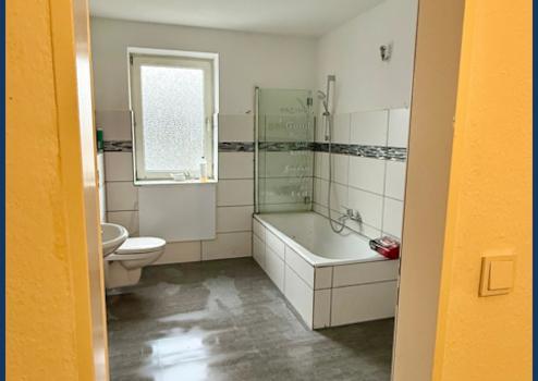 Die Wohnung verteilt sich auf 2 Räume mit einem großen Wohn- und Essbereich sowie einem Schlafzimmer. Der Wohn- und Essbereich ist mit einer modernen Einbauküche sowie einem hochwertigen Kaminofen ausgestattet. Die Wohnung wurde umfassend renoviert: Ein neuer Laminatboden sorgt für eine ansprechende Optik, die Einbauküche ist frisch installiert, und das Badezimmer wurde vollständig saniert.