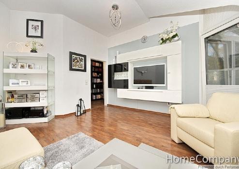 The apartment is situated on the fourth floor of a well-maintained multi-family building. The town centre, with the Galerie Königshof shopping centre, is only five minutes away, and in the immediate vicinity you will find a large selection of restaurants and cafes, a cinema and several fitness studios. The Stadtwald local rail station is three minutes’ walk away. From here, the S28 takes you to Düsseldorf’s main rail station in 19 minutes and to Wuppertal´s main station in 15 minutes. The Bahnstraße bus stop, from which there is a direct link towards Cologne, is only two minutes away. There is a parking space in front of the building.