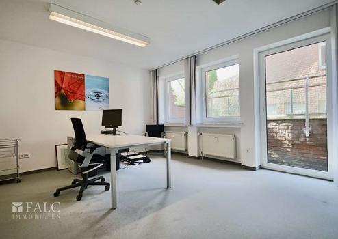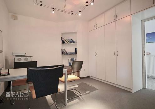 Die Kellerflächen im Untergeschoss, welche als Bürofläche genutzt werden, verfügen jeweils über eine eigene Toilette und eine kleine Tee-Küche sowie einen Austritt nach draussen und sind mit Teppichboden ausgelegt.