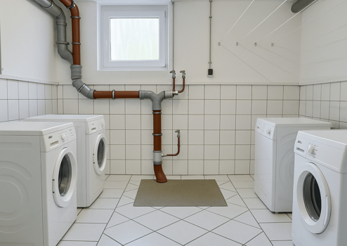 Des Weiteren gibt es im Keller einen Waschkeller sowie vier Kellerräume, die zu den Einheiten im EG und im 1. OG gehören.