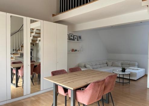 Diese lichtdurchflutete 1-Zimmer Maisonette-Wohnung befindet sich im Dachgeschoss eines ansprechenden Wohn- und Geschäftshauses in angenehmer und guter Lage von Gütersloh, in der Nähe des Zentrums, des Finanzamts und des Stadtparks. Die Wohnung wurde komplett renoviert - neue 3-fach verglaste Fenster, neues Badezimmer mit Fußbodenheizung, moderne Küche mit Einbaugeräten, neue Fußböden, neuer Balkonbelag, elektrische Rollläden. Außerdem sorgen Einbaustrahler für eine gemütliche Atmosphäre.