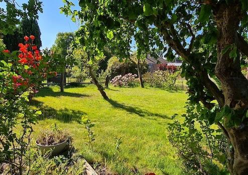 Das ca. 762 m² große Grundstück ist mit einem umfangreichen Pflanzenbestand versehen und südwestlich ausgerichtet.