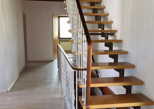 Flur mit Terrassenzugang sowie Treppenabgang ins Kellergeschoss und Treppenaufgang ins Dachgeschoss (nicht ausgebauter Bodenraum)