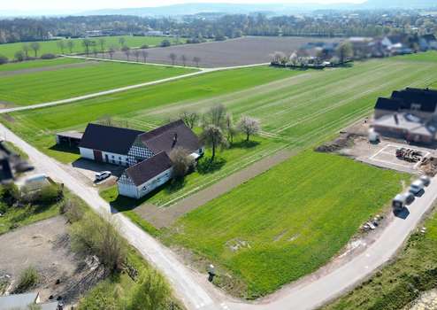 Werfen wir einen Blick in den Garten. Der Resthof ist umgeben von einer Wiese mit kleinem Baumbestand und Feldern mit Weitblick. (Der Acker drumherum steht NICHT zum Verkauf). Angrenzend an Ihrem neuen Zuhause entsteht ein kleines Baugebiet. Der Resthof befindet sich allerdings im Außenbereich - Idylle pur !