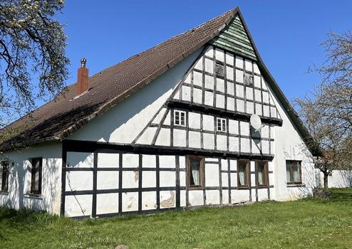 Dieser sanierungsbedürftige Resthof mit Stallungen sucht Sie ab sofort als neuen Eigentümer. Erbaut wurde ihr zukünftiges Zuhause um 1837 (KEIN DENKMAL) in Fachwerkbauweise. ca. 1966 erfolgten Anbauten am Haus und der Anbau des Kuhstalls. Die Grundstücksgröße beläuft sich auf stolze 2.936 m². Optional können noch ca. 800 qm rechts vom Haus nach Absprache gegen einen Aufpreis erworben werden. Das reine Wohnhaus umfasst eine Wohnfläche von ca. 132 m² und teilt sich wie folgt auf: Von der Diele und vom Garten aus gelangen Sie in das Wohnhaus. Hier erreichen Sie über einen zentralen Flur alle Räume. Das Badezimmer mit Dusche und Wanne, 3 Schlafzimmer, ein Wohnzimmer, die Küche und die ehemalige Waschküche. Die Holzfenster sind zum Großteil aus 1989. Beheizt wird das Wohnhaus über Nachtspeicheröfen. Das Wohnhaus befindet sich in einem sanierungsbedürftigem Zustand und wartet darauf, dass Sie hier all Ihre Wohnträume verwirklichen.