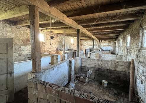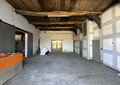 Die großzügige Diele, der ehemalige Kuhstall (Anbau), der ehemalige Schweinestall (Ursprungsbau), die große Scheune und die Remise mit Garagen umfassen eine gesamte Nutzfläche von ca. 465 m². Reichlich Platz für all Ihre Ideen. Von der Diele aus gelangen Sie in die jeweiligen Stallungen und auf den Heuboden. Der Heuboden bietet auch noch reichlich Platz ist jedoch auf Grund der Sanierungsbedürftigkeit nicht komplett begehbar. Die Stallungen müssen ebenfalls aus dem Dornröschenschlaf erweckt werden.