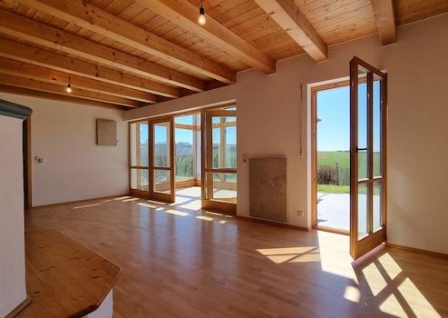 Ob beim Frühstück in der Morgensonne, beim Nachmittagskaffee oder bei einem entspannten Glas Wein am Abend – auf Ihrer Sonnenterrasse oder im gemütlichen Wintergarten finden Sie zu jeder Tageszeit ein perfektes Plätzchen. Genießen Sie den Fernblick und die Ruhe - oder verbringen Sie gemeinsame Stunden mit der Familie im großzügigen Garten, welcher durch die Gabionenmauer ebenerdig angelegt perfekt zum Spielen für Ihre Kinder geeignet ist.